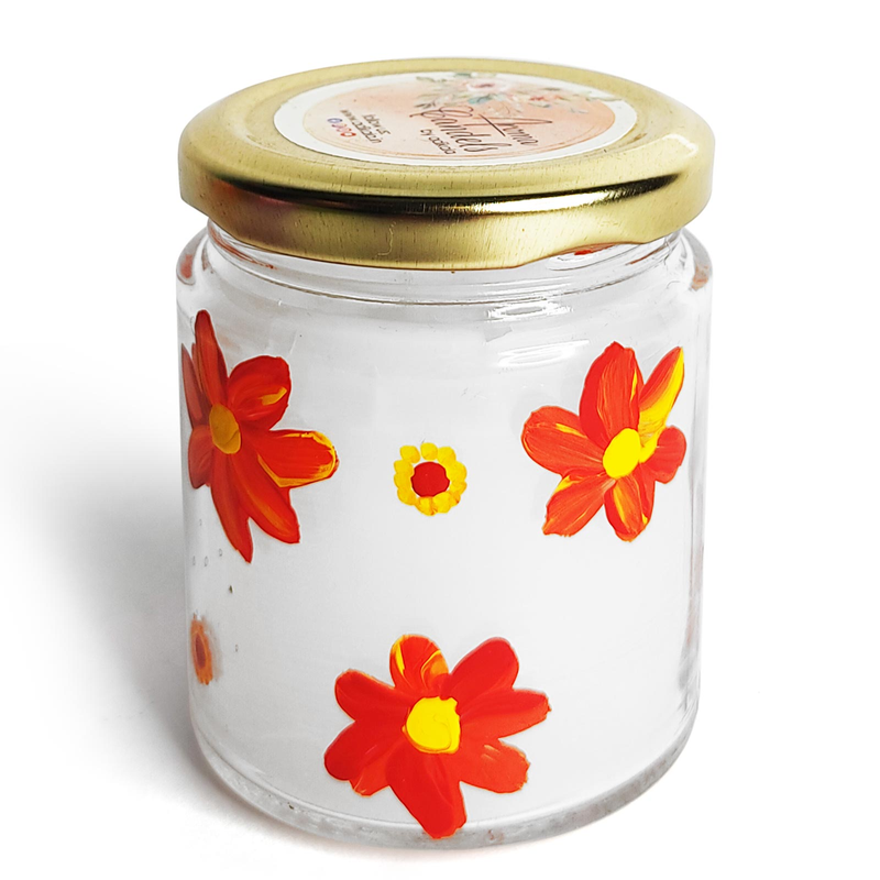 These lovely candle jars painted by hand in an freehand design of flowers. It has a beautiful translucency when lit which enhances the entirely hand painted decoration. Once spent, the jar can be used as a decorative mini plant pot or tea light holder for romantic moments or beautiful home decor. You can store candy or mouth freshner too in this, it will look great at your dinning table. This candle is poured by hand using natural ingredients to avoid chemicals that are harmful to you or your family. Our candles are natural and we used organic fragrance oils.